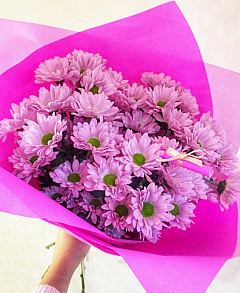 Розовый цвет обожают большинство женщин, а розовые цветы в обертке того же цвета станут идеальным жестом внимания как для возлюбленной, так и для важной в жизни дамы в честь знаменательного жизненного события или просто без повода. Розовые хризантемы обозначают радость и открытость, они подарят заряд хорошего настроения на несколько дней и оставят теплый след. Наслаждение легким манящим, кружащим голову запахом длится часами, подарок точно приведет к заслуженной благодарности.